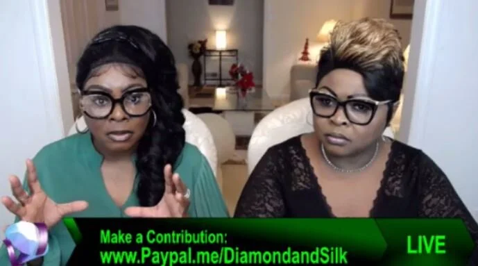 DIAMOND AND SILK CHIT CHAT LIVE Diamond and Silk 4/28/21 Diamond and Silk 4/28/21 EP 44 | Diamond and Silk talk to Dr. Simone Gold about Face Diapers Read More Diamond and Silk 4/26/21 Diamond and Silk 4/26/21 EP 43 | Diamond and Silk talk to General Mike Flynn about the Election and much more Read More Diamond and Silk 4/21/21 Diamond and Silk 4/21/21 EP 42 | Diamond and Silk go off on Dr Fauci just like Rep Jim Jordan Read More Diamond and Silk 4/20/21 Diamond and Silk 4/20/21 EP 40 | Diamond and Silk go off on Aisha Mills for calling Eric Bolling Racist Read More Diamond and Silk 4/20/21 Diamond and Silk 4/20/21 EP 41 | Marjorie Taylor Greene's about her resolution to expel Maxine Watters Read More Diamond and Silk 4/13/21 Diamond and Silk 4/13/21 EP 39 | Diamond and Silk talk to Mike Lindell about Frank Speech and Election Integrity Read More Diamond and Silk 4/12/21 Diamond and Silk 4/12/21 EP 38 | Diamond and Silk discuss The Flick Fest with Kevin Jackson Read More Diamond and Silk 4/8/21 Diamond and Silk 4/8/21 EP 37 | Diamond and Silk direct message to lyanla Vanzant and Lil Nas X Read More Diamond and Silk 4/6/21 Diamond and Silk 4/6/21 EP 36 | Diamond and Silk talk to Gov Scott Walker about The Long Game Read More Diamond and Silk 3/29/21 Diamond and Silk 3/29/21 Solutions for Jim Crow Joe when going up the stairs.... Read More Diamond and Silk 3/27/21 Diamond and Silk 3/27/21 EP 35 | Diamond and Silk talk to Brad Parscale about the 2020 election Read More Diamond and Silk 3/23/21 Diamond and Silk 3/23/21 EP 34 | Kirk Franklin and School Segregation (Warning Salty Language) Read More Diamond and Silk 3/15/21 Diamond and Silk 3/15/21 EP 33 | Stacey Dash, Brian Stelter, Racially Profiling Food Read More Diamond and Silk 3/15/21 Diamond and Silk 3/15/21 Oprah and Meghan Markle have earned the Itch of the week Read More Diamond and Silk 3/8/21 Diamond and Silk 3/8/21 EP 32 | Rep Marjorie Greene breakdown HR1 and so much more Read More Diamond and Silk 3/6/21 Diamond and Silk 3/6/21 Diamond and Silk cancelled Cancel Culture and exposed the Democrats racist past. Read More Diamond and Silk 3/4/21 Diamond and Silk 3/4/21 Diamond and Silk on Live telling the Truth. 3-4-2021 Read More Diamond and Silk 3/2/21 Diamond and Silk 3/2/21 EP 31 | Diamond and Silk go off on Dr. Fauci and SCOTUS Read More Diamond and Silk 2/25/21 Diamond and Silk 2/25/21 President Trump should tell all of them to KISS HIS ASS Read More Diamond and Silk 2/25/21 Diamond and Silk 2/25/21 EP 30 | Actor Antonio Sabato shares his new adventure with the world Read More Newer Posts Older Posts