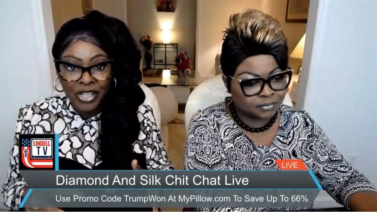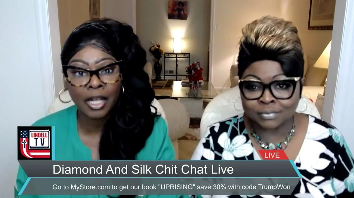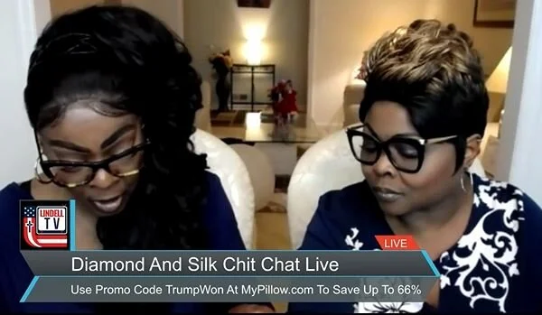 DIAMOND AND SILK CHIT CHAT LIVE Diamond and Silk 12/1/21 Diamond and Silk 12/1/21 Diamond & Silk Chit Chat Live Joined By Mike Lindell Discussing Supreme Court Complaint for 2020 Election Read More Diamond and Silk 11/24/21 Diamond and Silk 11/24/21 Diamond & Silk Chit Chat Live- Biden's Low Approval Ratings, Monkey Pots, Call-in Viewer Feedback Read More Diamond and Silk 11/19/21 Diamond and Silk 11/19/21 Diamond & Silk Chit Chat Live- Biden's Low Approval Ratings, Monkey Pots, Call-in Viewer Feedback Read More Diamond and Silk 11/17/21 Diamond and Silk 11/17/21 Diamond & Silk Chit Chat Live on Biden Regime's Infrastructure Bill and 2020 Election Read More Diamond and Silk 11/16/21 Diamond and Silk 11/16/21 Diamond & Silk Chit Chat Live on Democrat Virginia Election Schemes, the RNC, and Black Lives Matter Threats Read More Diamond and Silk 11/11/21 Diamond and Silk 11/11/21 Diamond & Silk Chit Chat Live on Travis Scott's Astroworld Disaster Read More Diamond and Silk 11/9/21 Diamond and Silk 11/9/21 Diamond & Silk Chit Chat Live- Talks About RHINO Republicans and the Deadly Rap Concert Stampede Read More Diamond and Silk 11/5/21 Diamond and Silk 11/5/21 Diamond & Silk Chit Chat Live Joined By Bryson Gray, Tyson James and Chandler Crump Read More Diamond and Silk 11/2/21 Diamond and Silk 11/2/21 Dr. Ardis Joins Diamond and Silk Discussing Vaccines Read More Diamond and Silk 10/25/21 Diamond and Silk 10/25/21 FIGHT FOR YOUR FREEDOMS NOW Read More Diamond and Silk 10/25/21 Diamond and Silk 10/25/21 See what Democrats don't want you to see Read More Diamond and Silk 10/25/21 Diamond and Silk 10/25/21 Active Duty service members REJECT the VAX Read More Diamond and Silk 10/25/21 Diamond and Silk 10/25/21 NBA STAR, BRANDON GOODWIN, SAID HE GOT BLOOD CLOTS AFTER TAKING THE JAB Read More Diamond and Silk 10/25/21 Diamond and Silk 10/25/21 What's In The Jab Read More Diamond and Silk 10/16/21 Diamond and Silk 10/16/21 Diamond and Silk are pissed off about the Pumpkin shortages Read More Diamond and Silk 10/16/21 Diamond and Silk 10/16/21 Just Say No To Drugs Now Read More Diamond and Silk 10/16/21 Diamond and Silk 10/16/21 Your Antibodies are Probably Better than the Vaccination Read More Diamond and Silk 10/16/21 Diamond and Silk 10/16/21 Alan Dershowitz On The Class Action Lawsuit Against Dominion Read More Diamond and Silk 10/16/21 Diamond and Silk 10/16/21 Diamond and Silk read from their mothers bible, The IRS, Say NO to drugs. Read More Diamond and Silk 10/16/21 Diamond and Silk 10/16/21 Diamond and Silk talk about the Arizona Audits and Break-Through cases. Read More Newer Posts Older Posts
