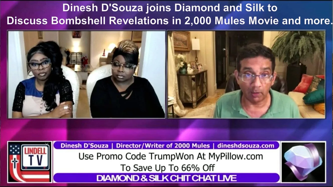 Diamond and Silk 4/28/22 Diamond and Silk 4/28/22 Dinesh D'Souza Joins Diamond & Silk to Discuss 2,000 Mules Movie and more... Read More