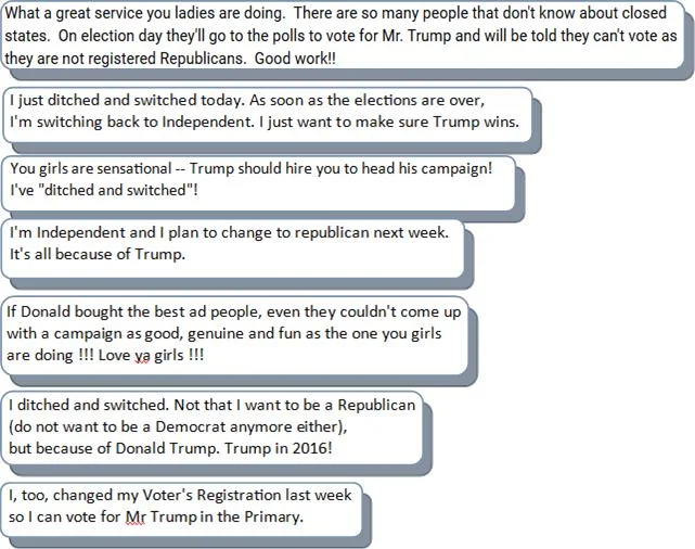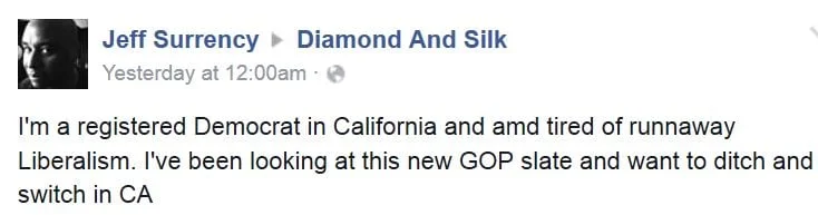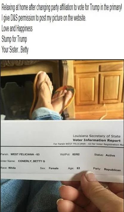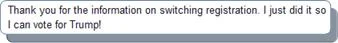 Hey Girls! Yep, I got my whole family doing the ditch and switch. We all switched from Democrat or independents to Republicans just to vote for TRUMP. We want our country back and We know he is the only one who can save us.