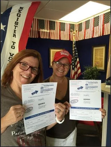 My name is deb maxfield and my partner is Missy simmons and today we went to the election board and changed our party to Republican in support for Mr. Donald Trump. We are also given you permission to use our pictures on your website or video that you might have.. I will also be sending you my video of each of us signing. Yes this was a great day, by the way I am a ?? year old women who has never been more excited about a candidate as I have for Mr. trump, he brings me hope and prosperity in my life, to see America great again.. Deb maxfield I am the one with the hat on