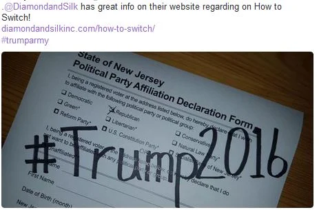 "Send us a Video or Photos of you Ditching and Switching to Republican just to vote for Mr. Donald J. Trump