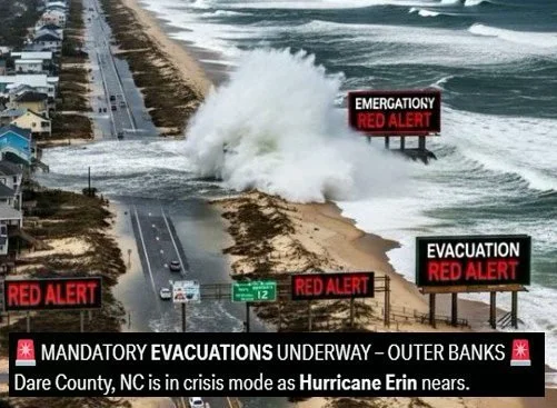 As Hurricane Erin churns offshore, evacuation orders are being issued for North Carolina's Outer Banks, a fragile band of barrier islands. On Sunday evening, Hyde County commissioners issued a State of Emergency and ordered everyone on Ocracoke Island to evacuate before the storm's forces cut off their sole escape path.